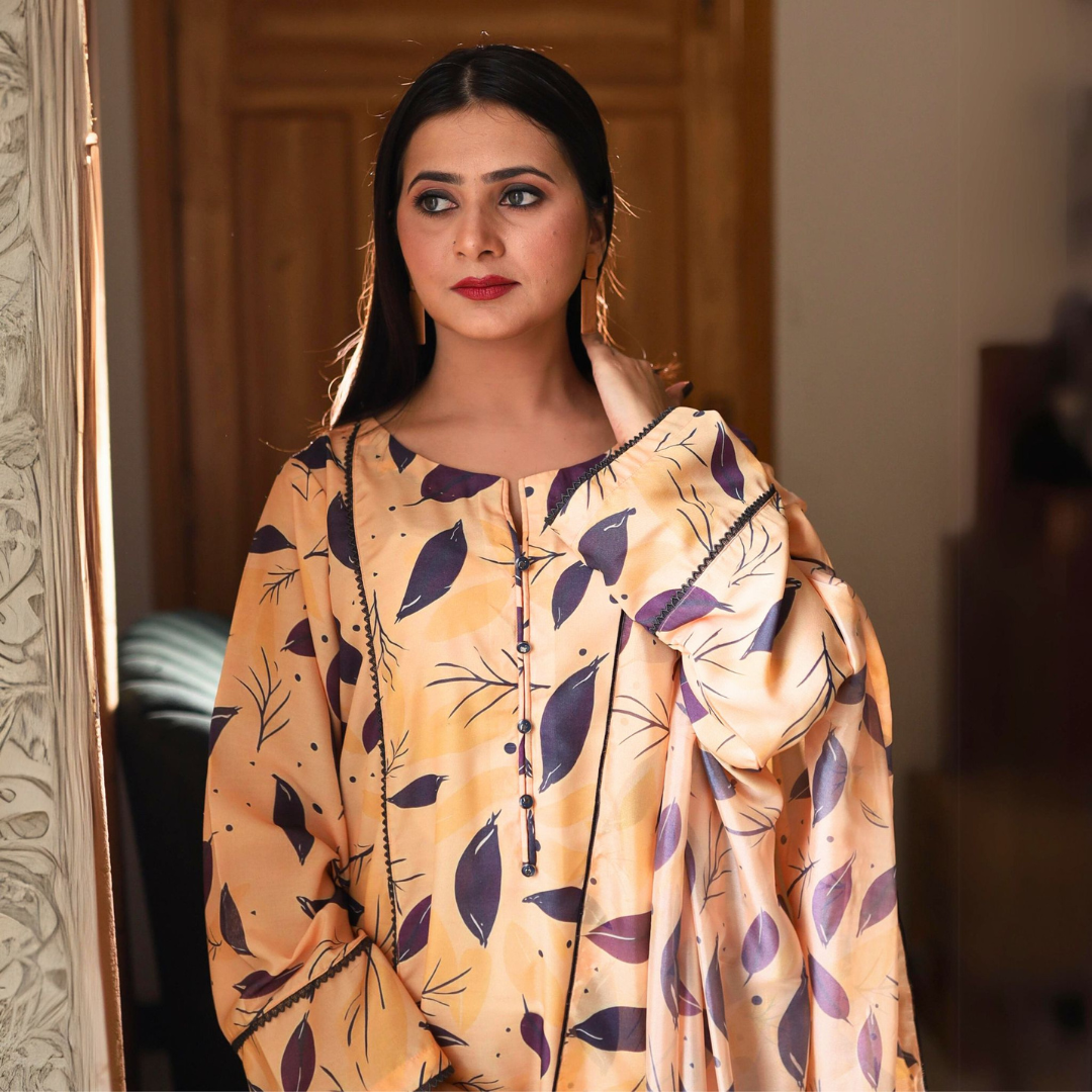 3PC Unstitched Premium Poly Cotton Suit with Premium Silk Dupatta | 9-A-US-24 | Autumn’24